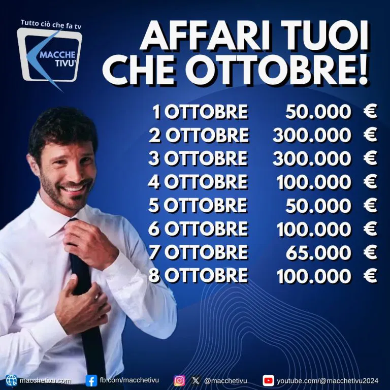 Dietro il trionfo di De Martino potrebbe esserci un fattore ben preciso: i super pacchi. Come evidenziato dal portale MaccheTv, nelle ultime otto puntate di Affari Tuoi sono stati vinti complessivamente 1 milione e 65 mila euro, una media di 133 mila euro a puntata.